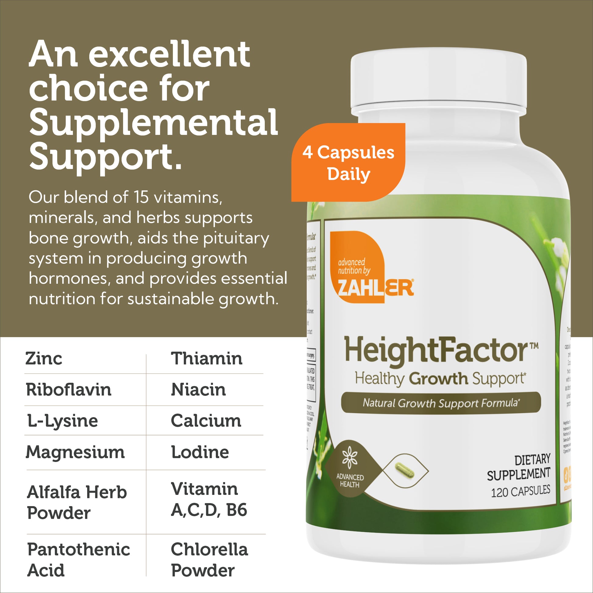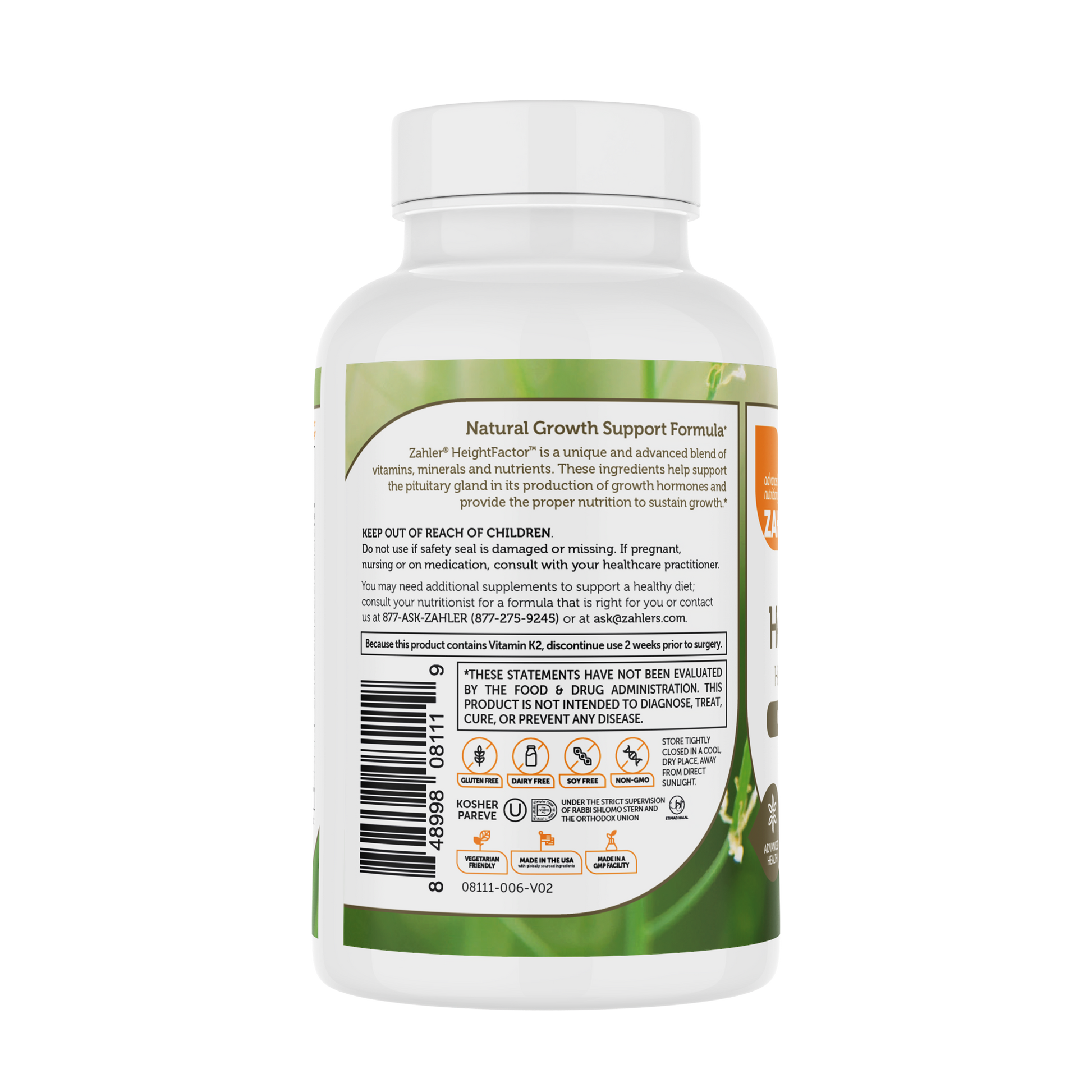 Zahler HeightFactor is an advanced proprietary blend of vitamins, minerals and nutrients that help support the pituitary system in its production of growth hormones and provide the proper nutrition to sustain necessary growth.