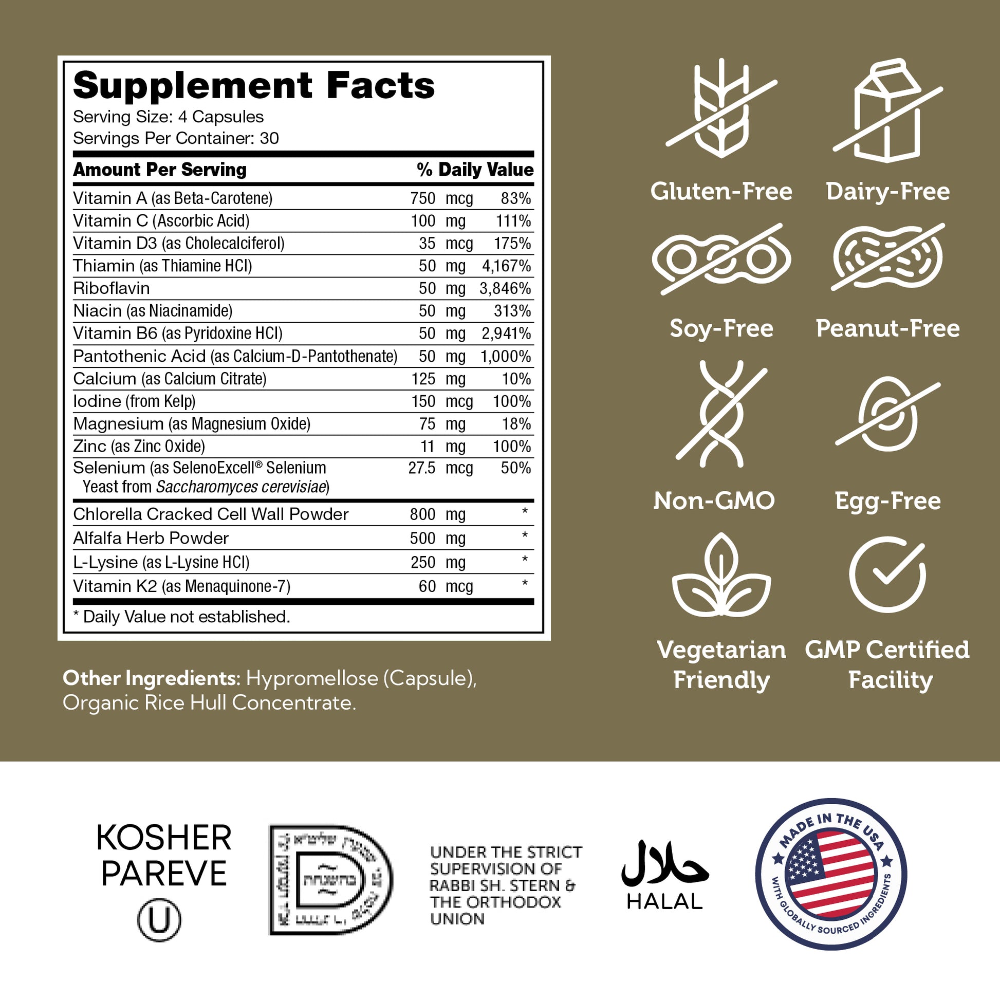 • Contains Calcium, Alfalfa, Chlorella, Zinc and more