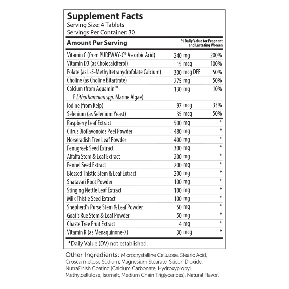 Premium Postnatal vitamins typically include a combination of Vitamin C, D, Folate, Iodine and specific herbs to help support milk supply.