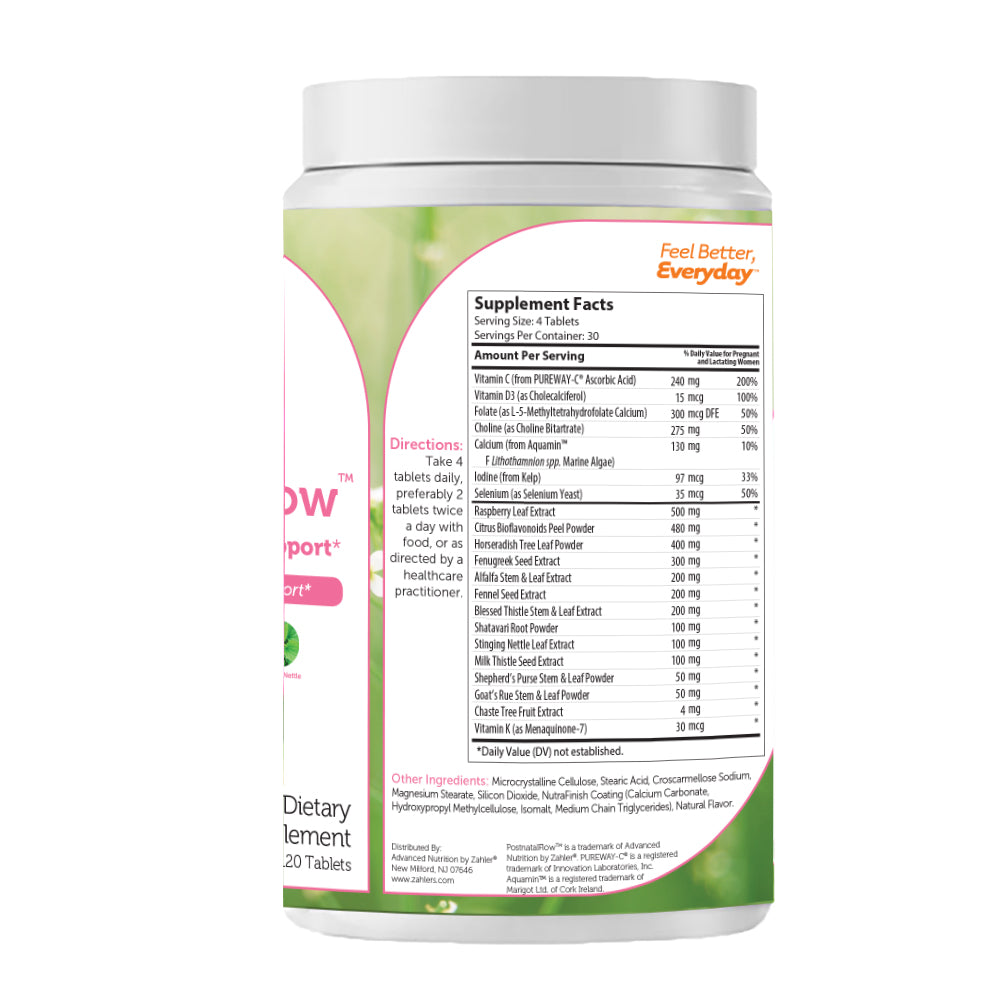 Zahler PostnatalFlow™ is a brilliant combination featuring not only the basic nutrients but also a comprehensive combination of 20+ herbs and nutrients, including Fenugreek, Red Raspberry, Milk Thistle and more, and is designed to support mom during this beautiful stage of breastfeeding. PostnatalFlow™ helps boost the quantity and quality of the milk supply for long-term lactation success.