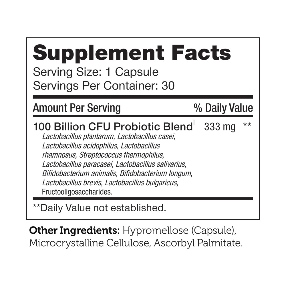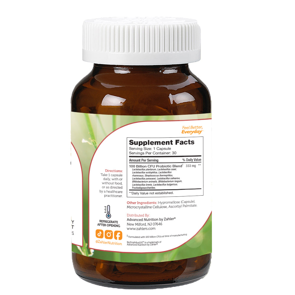 Zahler Biodophilus 100 Billion contains a potent blend of 11 different strains of probiotics for gut health support.