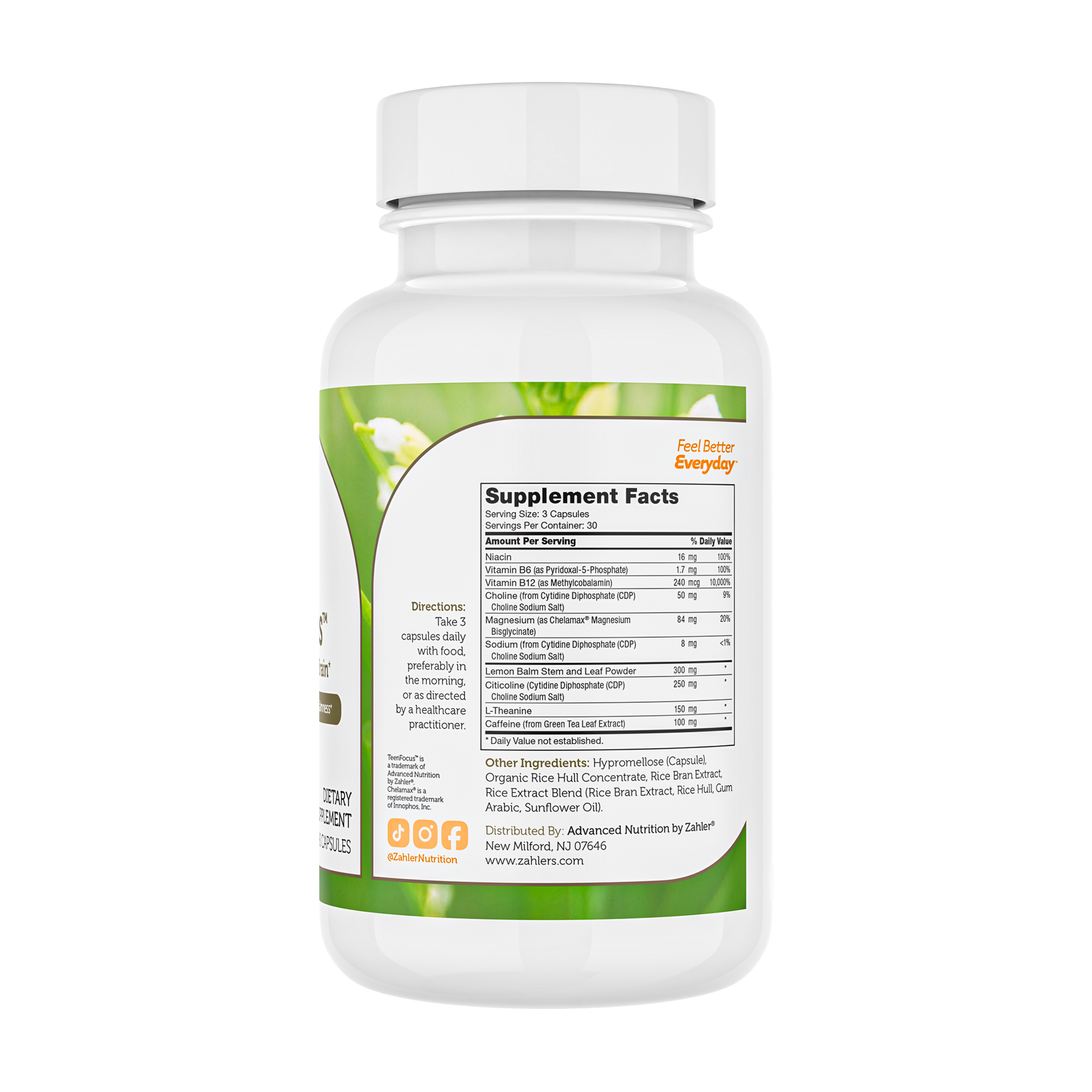 Focus and concentration. Those are some of the key ingredients for success. The ability to focus and concentrate on any given task can be the difference between achievement and failure. It may come naturally to some, but most of us can do well with a boost. TeenFocus from Advanced Nutrition by Zahler is formulated to provide teenagers with the power to perform and ability to achieve.
