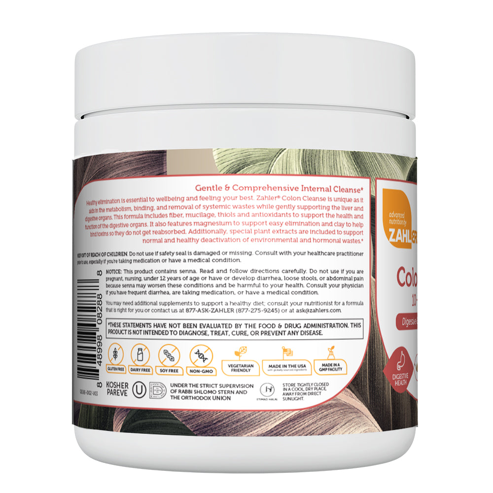 Healthy elimination is essential to wellbeing and feeling your best. Zahler Colon Cleanse is unique as it aids in the metabolism, binding, and removal of systemic wastes while gently supporting the liver and digestive organs. This formula includes fiber, mucilage, thiols and antioxidants to support the health and function of the digestive organs. It also features magnesium to support easy elimination and clay to help bind toxins so they do not get reabsorbed. Additionally, special plant extracts are included to support normal and healthy deactivation of environmental and hormonal wastes.