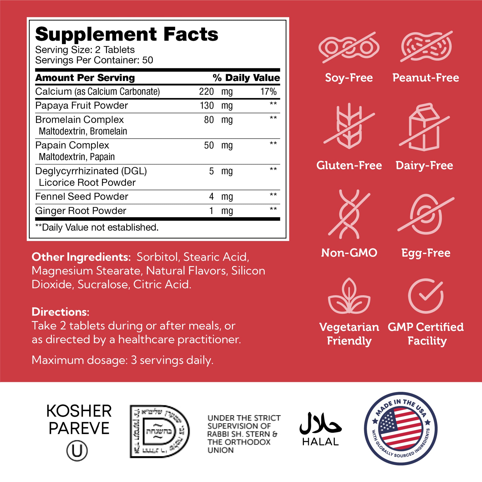 • Contains Papaya Enzymes, Bromelain and Calcium
