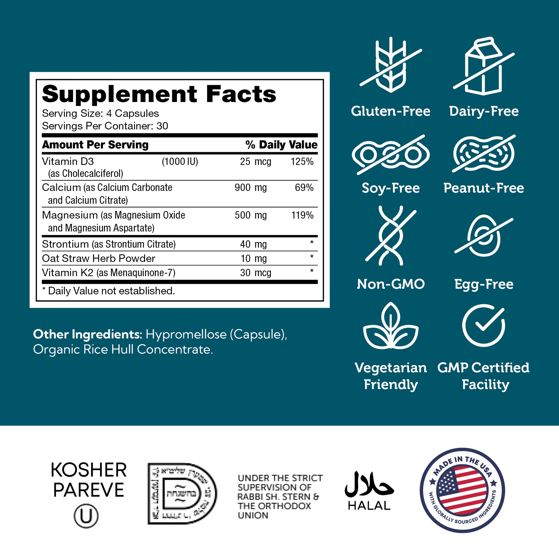 PowerCal capsules is a supplement formulated to promote stronger bones and teeth. PowerCal also helps the body maintain a regular heartbeat and aids in muscle contraction. Zahler’s PowerCal formula includes Calcium and other important nutrients such as Magnesium and Vitamins K2 and D3, which bolster Calcium’s absorption. These ingredients act collectively to prevent bone loss and promote bone health. Additionally, PowerCal includes Oat Straw and Strontium, which are known to facilitate new bone growth and increase bone mass.